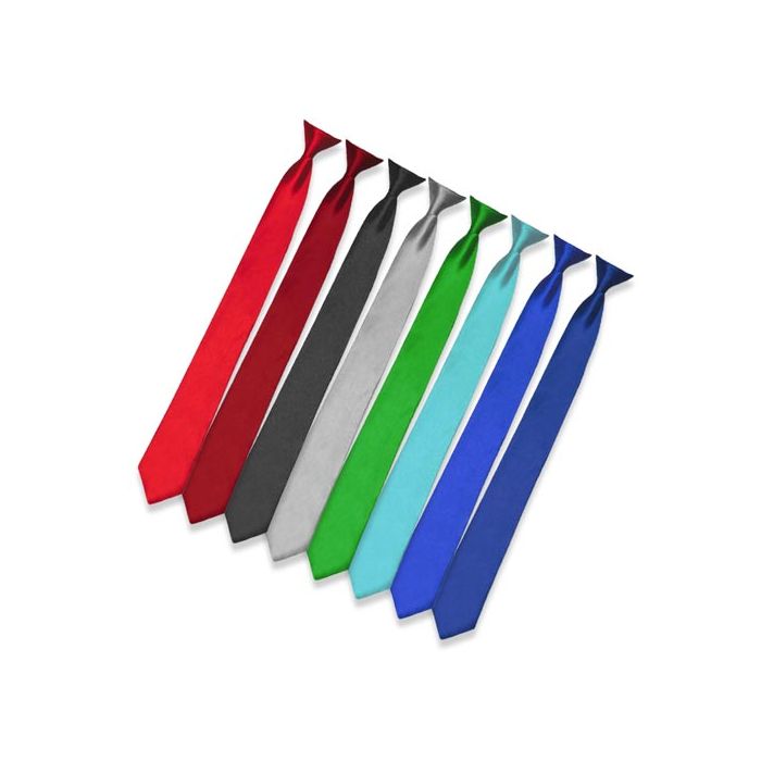 Clip-on stropdas met een lengte van 45 of 50cm (standaardmaat). Dit is gemeten van bovenkant knoop tot de punt onderaan. U kunt kiezen uit meer dan 30 verschillende kleuren. Deze kleuren komen overeen met de smalle effen stropdassen (à € 4.95) op onze site. De kosten voor het vermaken van de stropdas en de clip bedragen € 3,-.