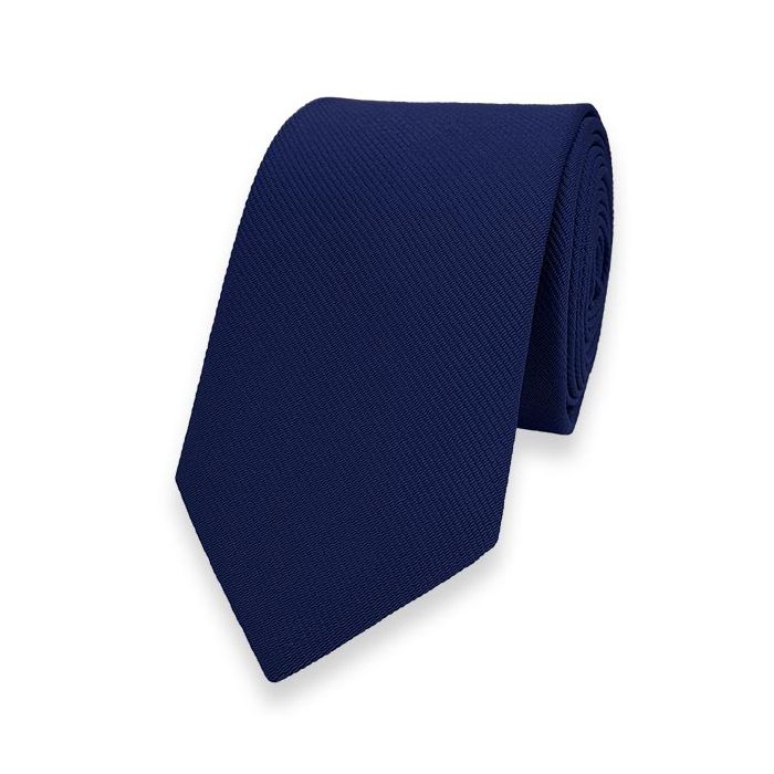 Hoogwaardige donkerblauwe stropdas met een licht fluwelen glans. Deze stropdas met een breedte van 6 centimeter heeft een mooi gestreept effect. Deze basic stropdas in de kleur donkerblauw staat garant voor jarenlang draagplezier en is geschikt voor formele en informele gelegenheden.