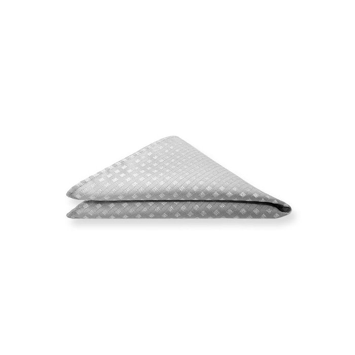 Prachtige zilveren pochet met geruit motief. Door de ingeweven zilverkleurige garen krijgt deze pochet zijn unieke uitstraling. Deze pochette combineert perfect met onze 'Stropdas Zilver Geruit'.