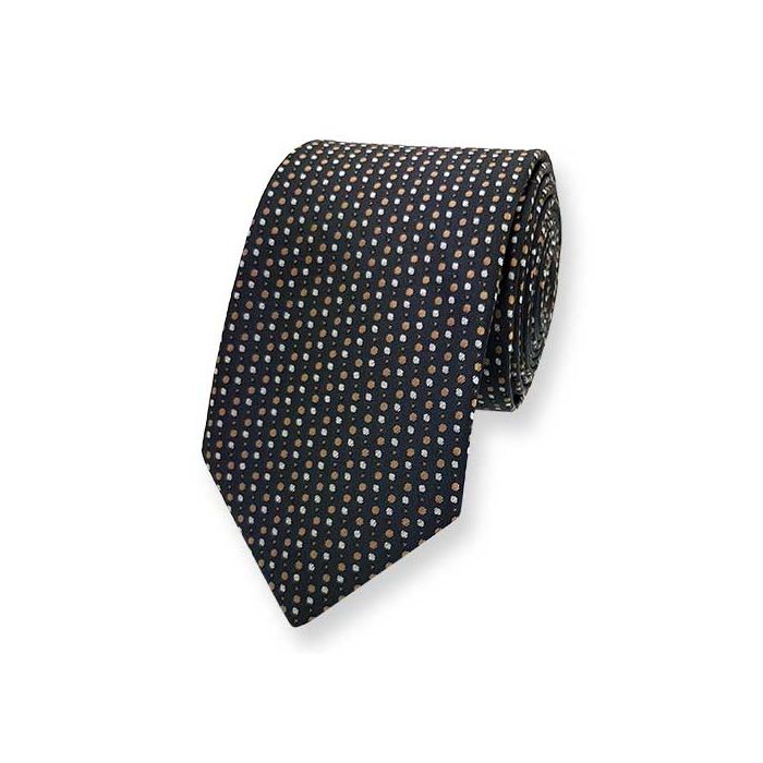 Een originele bruine stropdas met bruine en witte stippen. Deze das met stippen is tijdloos en eindeloos te combineren. De stropdas is geschikt voor diverse gelegenheden. Het breedste punt meet 7 centimeter.