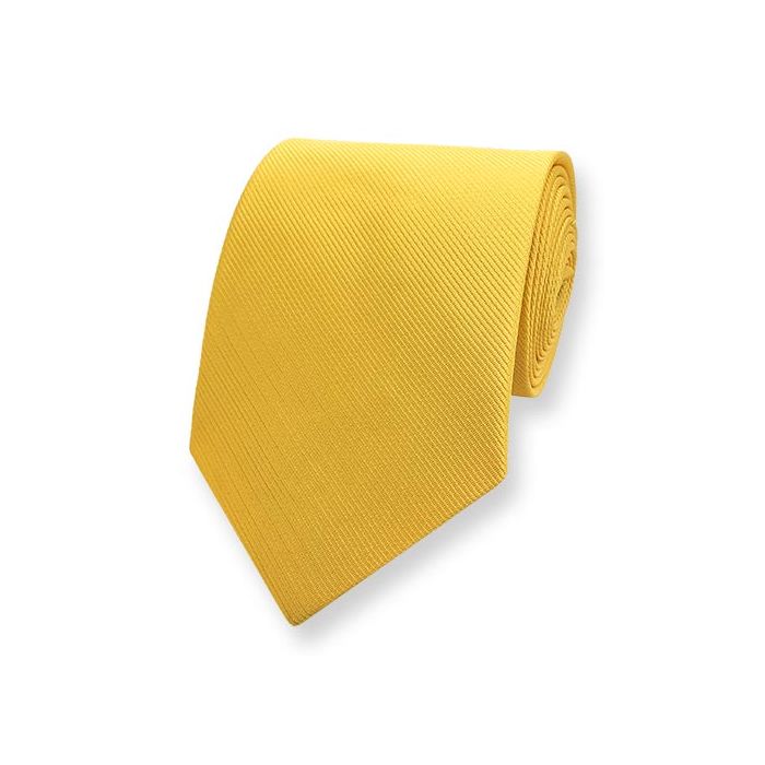 Hoogwaardige gele stropdas met een licht fluwelen glans. Deze stropdas met een breedte van 8 centimeter is gemaakt van een prachtige stof met een subtiel gestreept effect.