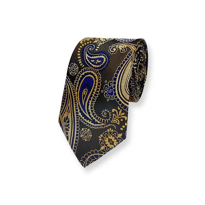 Stropdas Goud Donkerblauw Paisley