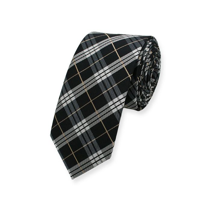 Zeer voordelige stropdas van top kwaliteit. Eenvoudig te combineren door het ruitmotief in de kleuren zwart en wit met een goud accent. Door de breedte van 6cm is deze stropdas voor uiteenlopende gelegenheden geschikt.