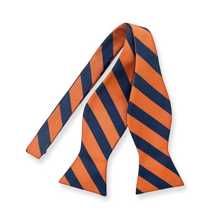Stijlvolle oranje zelfstrikker met navy strepen. Het strikken van een ongestrikte vlinderdas is een hele kunst. Deze klassieke zelfstrikker is gemaakt van hoogwaardig soepel vallend jacquard zijde en heeft een verstelbare halsband. Hierdoor hoeft u zich alleen maar bezig te houden met het strikken van een mooie knoop.